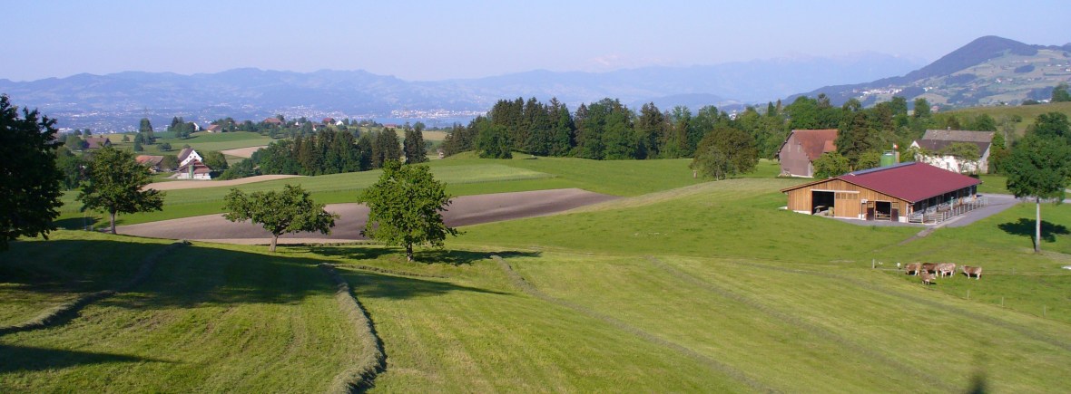 Unsere Familie bewirtschaftet einen rund 50ha grossen Landwirtschaftsbetrieb in der hügeligen Landschaft des Zimmerbergs auf 700m ü. M.